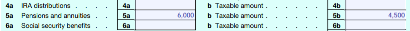 Bob and Sue are still in their earning years, so seeing amounts on line 5 immediately prompts a couple of questions: