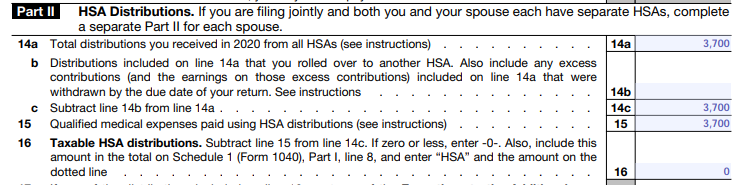 In part II of IRS Form 8889, you can learn whether Bob and Sue are using their HSA balance or investing it for the future.