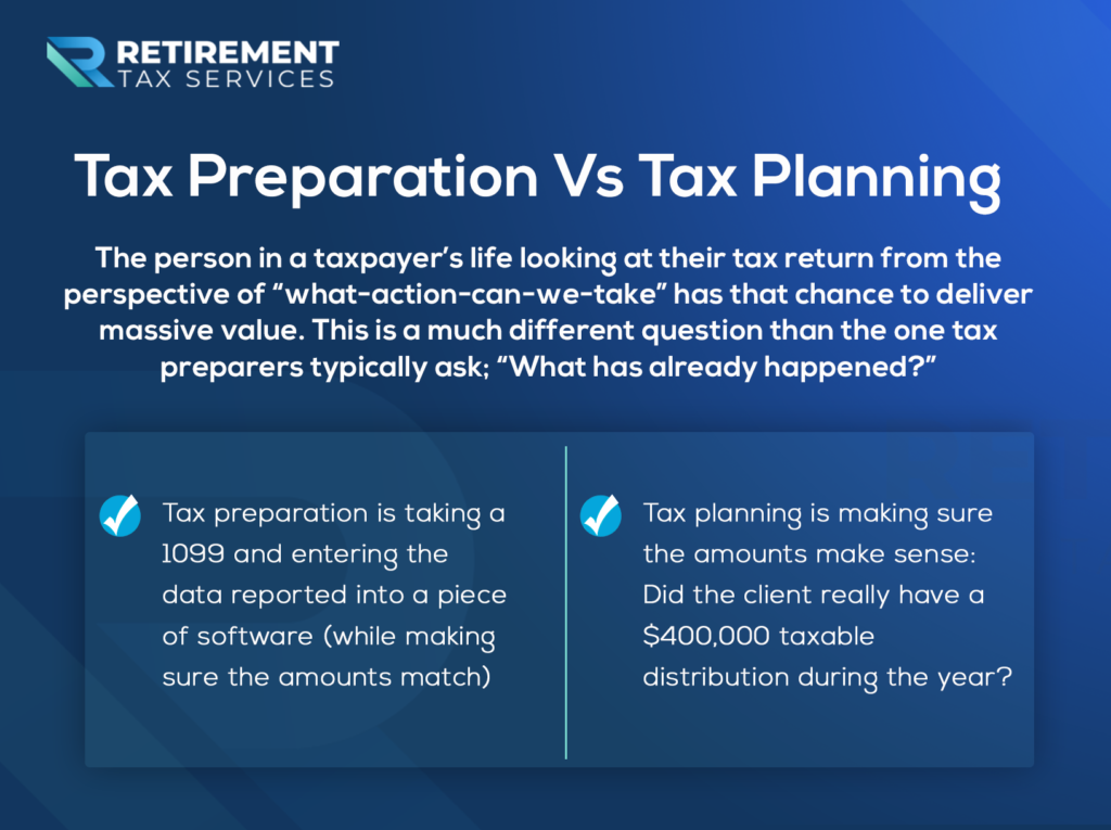 A tax preparer is not inherently a tax planner—and everyone should have a tax planner working on their team.